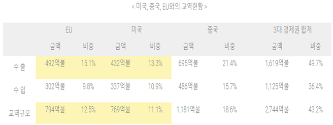 * EU´Â Áß±¹¿¡ ÀÌ¾î ¿ì¸®³ª¶óÀÇ Á¦2ÀÇ ¼öÃâ½ÃÀåÀÌÀÚ ÀϺ», Áß±¹, ¹Ì±¹¿¡ ÀÌÀº Á¦4À§ÀÇ ¼öÀÔ½ÃÀåÀ¸·Î, Ãѱ³¿ª±Ô¸ð·Î Áß±¹¿¡ À̾î Á¦2ÀÇ ±³¿ª´ë»ó±¹ÀÓ. (2006³â ±âÁØ, ¹«¿ªÇùȸ)